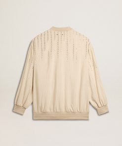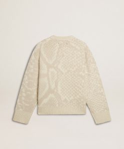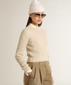 Golden Goose Donna Men’s Maglione Cropped Girocollo In Lana Color Beige E Cristalli All Over | Beige