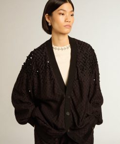 Golden Goose Cardigan Da Donna Di Colore Nero Con Cintura E Cristalli | Nero | Donna Men’s