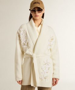 Golden Goose Cardigan Da Donna In Cotone Color Panna Con Ricamo Floreale | Panna | Donna Men’s