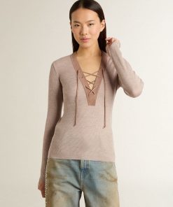 Golden Goose Maglioncino Da Donna In Lana Merino Marrone Chiaro | Marrone Chiaro | Donna Men’s