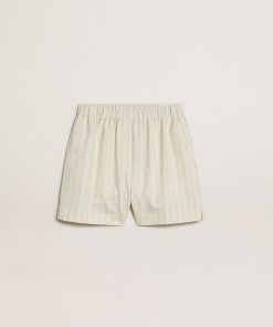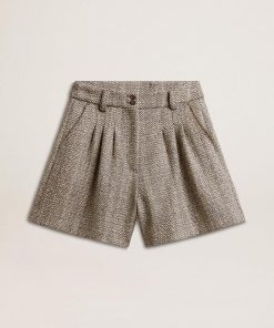 Golden Goose Shorts Da Donna Di Colore Marrone Ecrù In Lana Herringbone | Marrone Ecrù | Donna Men’s