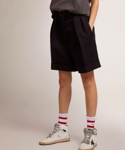 Golden Goose Shorts Da Donna In Gabardine Di Lana Nera Con Cintura In Vita | Nero | Donna Men’s