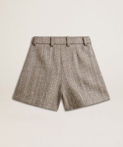 Golden Goose Shorts Da Donna Di Colore Marrone Ecrù In Lana Herringbone | Marrone Ecrù | Donna Men’s