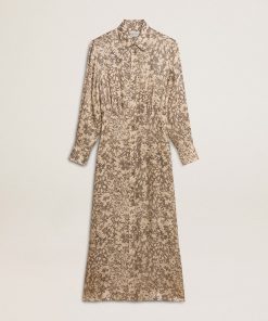 Golden Goose Vestito Da Donna Midi In Misto Seta Con Stampa Floreale | Beige E Nero | Donna Men’s