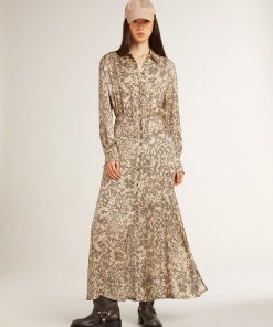 Golden Goose Vestito Da Donna Midi In Misto Seta Con Stampa Floreale | Beige E Nero | Donna Men’s