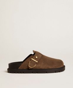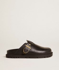 Golden Goose Sabot Lucy Donna In Pelle Nera Lucida Con Fibbia In Metallo Dorato | Donna Scarpe