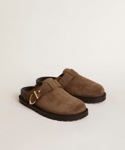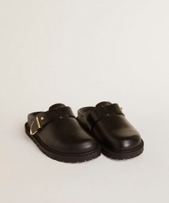 Golden Goose Sabot Lucy Donna In Pelle Nera Lucida Con Fibbia In Metallo Dorato | Donna Scarpe
