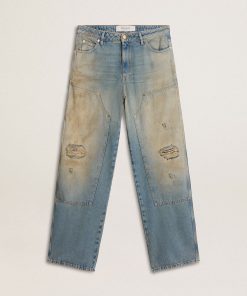 Golden Goose Jeans Da Uomo Con Lavaggio Sabbia Dall’effetto Distressed | Blu Chiaro | Uomo Men’s