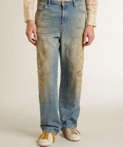 Golden Goose Jeans Da Uomo Con Lavaggio Sabbia Dall’effetto Distressed | Blu Chiaro | Uomo Men’s