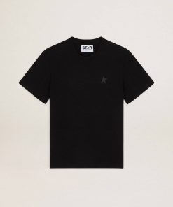 Golden Goose Uomo Men’s T-shirt Nera Collezione Star Con Stella Ton Sur Ton Sul Davanti | Nero