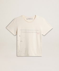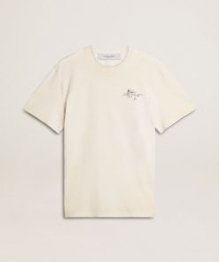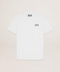 Golden Goose Uomo Men’s T-shirt Bianca Collezione Star Con Logo E Stella Neri A Contrasto | Bianco