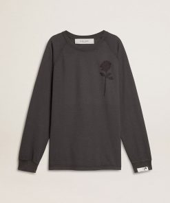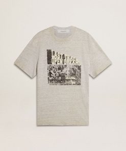 Golden Goose T-shirt Da Uomo Grigia Effetto Vintage Con Stampa Frontale | Grigio | Uomo Men’s