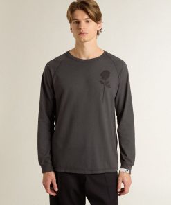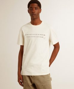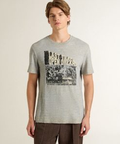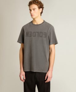 Golden Goose T-shirt Da Uomo Grigia Effetto Vintage Con Stampa Frontale | Grigio | Uomo Men’s
