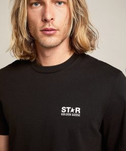 Golden Goose Uomo Men’s T-shirt Nera Collezione Star Con Stella Ton Sur Ton Sul Davanti | Nero