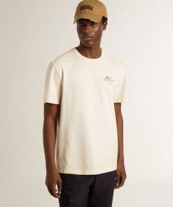 Golden Goose Uomo Men’s T-shirt Bianca Collezione Star Con Logo E Stella Neri A Contrasto | Bianco