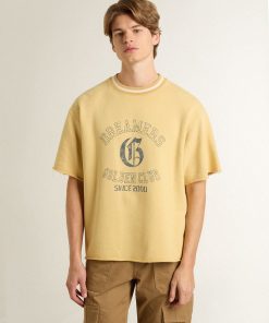 Golden Goose T-shirt Da Uomo Dal Fit Over In Cotone Giallo Con Stampa Blu | Giallo | Uomo Men’s