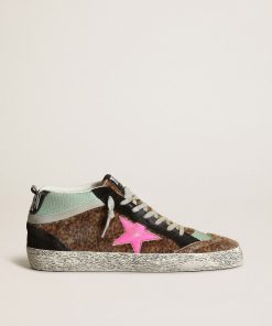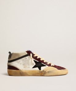 Golden Goose Uomo Scarpe Mid Star Con Stella In Pelle Laminata Verde E Virgola Bianca | Bianco