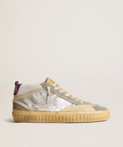 Golden Goose Uomo Scarpe Mid Star Lab In Pelle Laminata Argento E Rete Con Stella Traforata