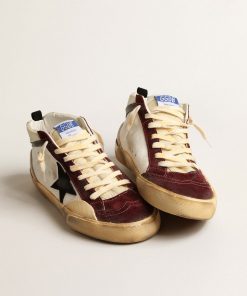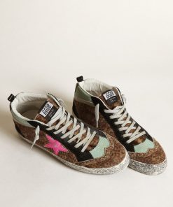 Golden Goose Uomo Scarpe Mid Star Con Stella In Pelle Laminata Verde E Virgola Bianca | Bianco