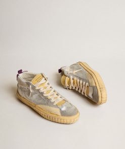 Golden Goose Uomo Scarpe Mid Star Lab In Pelle Laminata Argento E Rete Con Stella Traforata