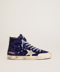 Golden Goose Francy Penstar Uomo In Paillettes Blu Con Stella In Suede Ghiaccio | Uomo Scarpe