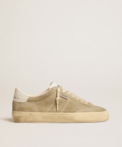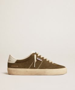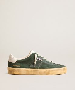 Golden Goose Soul Star Uomo In Suede Verde Con Talloncino E Linguetta In Pelle Bianca | Uomo Scarpe