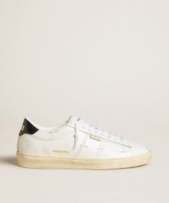 Golden Goose Uomo Scarpe Matchstar In Pelle Bianca Con Talloncino In Pelle Blu Scuro | Bianco
