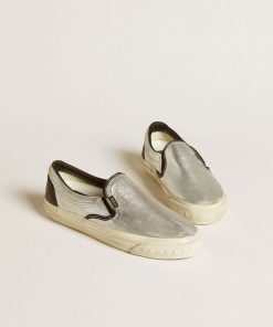 Golden Goose Vce Penstar Uomo In Pelle Laminata Argento Con Talloncino In Pelle Nera | Uomo Scarpe