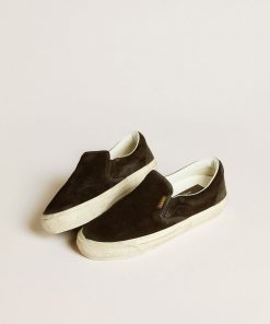 Golden Goose Uomo Scarpe Soul Star In Suede Verde Con Talloncino In Pelle Bianco Latte