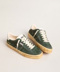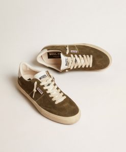 Golden Goose Soul Star Uomo In Suede Verde Con Talloncino E Linguetta In Pelle Bianca | Uomo Scarpe