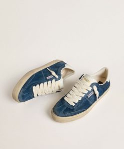 Golden Goose Uomo Scarpe Matchstar In Pelle Bianca Con Talloncino In Pelle Blu Scuro | Bianco