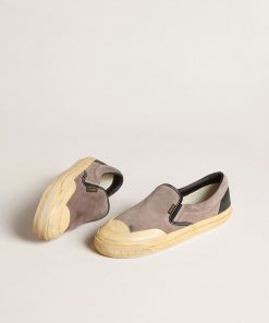 Golden Goose Vce Penstar Uomo In Suede Tortora Con Talloncino In Pelle Nera | Uomo Scarpe