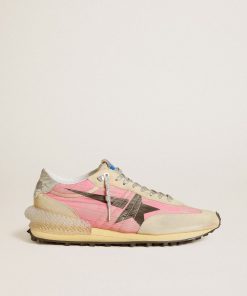 Golden Goose Marathon Uomo In Nylon Rosa E Suede Oro Con Stella Stampata Nera | Uomo Scarpe