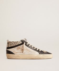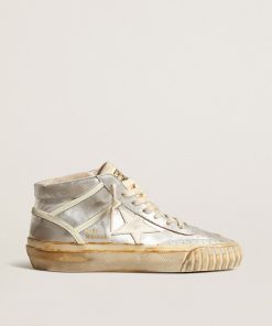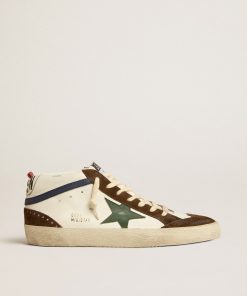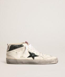 Golden Goose Uomo Scarpe Mid Star Con Stella In Pelle Laminata Verde E Virgola Bianca | Bianco