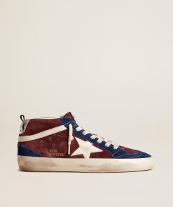 Golden Goose Mid Star Uomo In Suede Rosso Vino Con Stella E Virgola In Nappa Bianca | Uomo Scarpe