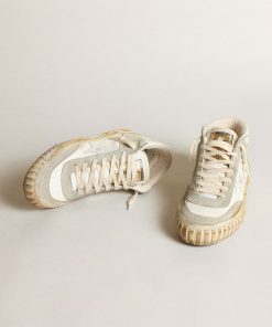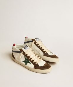 Golden Goose Uomo Scarpe Mid Star Con Stella In Pelle Laminata Verde E Virgola Bianca | Bianco
