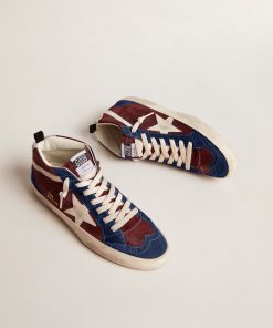 Golden Goose Mid Star Uomo In Suede Rosso Vino Con Stella E Virgola In Nappa Bianca | Uomo Scarpe