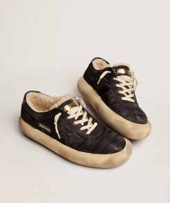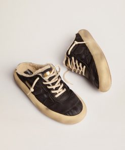 Golden Goose Space-star Uomo In Nylon Nero Trapuntato E Fodera In Shearling | Nero | Uomo Scarpe