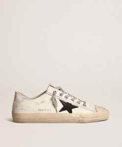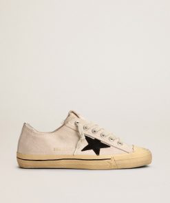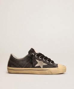 Golden Goose V-star Uomo Ltd In Canvas Nero Con Stella E Talloncino Color Ghiaccio | Uomo Scarpe