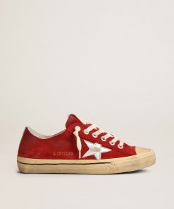 Golden Goose V-star Uomo Ltd In Suede Rosso Scuro Con Stella E Talloncino Argento | Uomo Scarpe