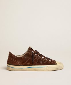 Golden Goose V-star Ltd Uomo In Suede Color Marrone Scuro Con Stella Ton Sur Ton | Uomo Scarpe