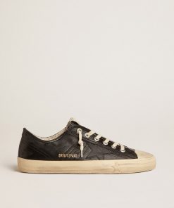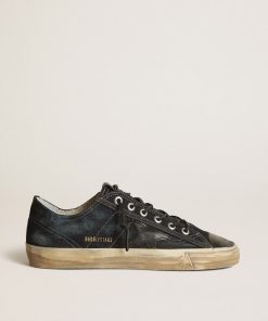 Golden Goose Uomo Scarpe Sneaker V-star In Denim Color Blu Notte Con Stella E Punta In Pelle Nera