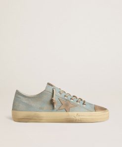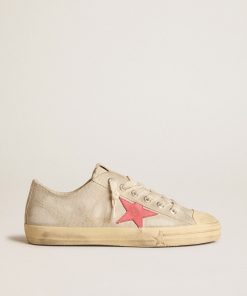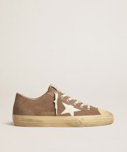Golden Goose V-star Uomo In Suede Color Tortora Con Stella In Pelle Grigio Chiaro | Uomo Scarpe
