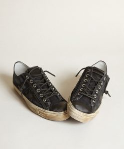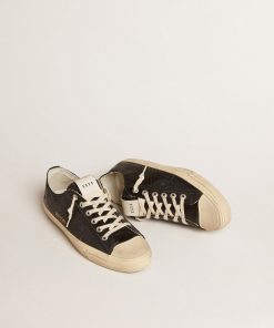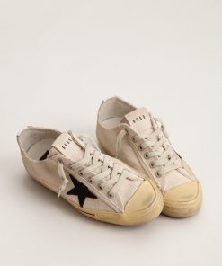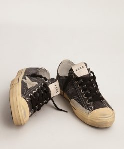 Golden Goose V-star Uomo Ltd In Canvas Nero Con Stella E Talloncino Color Ghiaccio | Uomo Scarpe