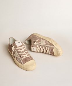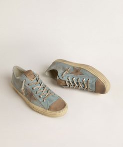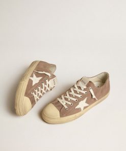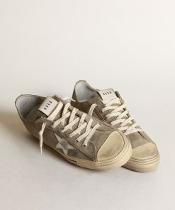 Golden Goose V-star Uomo In Suede Color Tortora Con Stella In Pelle Grigio Chiaro | Uomo Scarpe