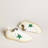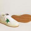 Sognando gli anni Ottanta. Le nostre sneaker Ball Star 2 si rifanno all’atmosfera dei college americani, tra un tiro a canestro e un giro in skateboard. Con la tomaia in pelle bianca, questo modello si distingue per la stella in pelle verde e per il talloncino in pelle laminata color argento. E come tocco finale, i lacci banchi: le cose belle che non passano mai di moda.