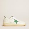 Sognando gli anni Ottanta. Le nostre sneaker Ball Star 2 si rifanno all’atmosfera dei college americani, tra un tiro a canestro e un giro in skateboard. Con la tomaia in pelle bianca, questo modello si distingue per la stella in pelle verde e per il talloncino in pelle laminata color argento. E come tocco finale, i lacci banchi: le cose belle che non passano mai di moda.