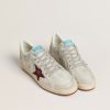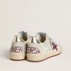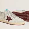 Sognando gli anni Ottanta. Le nostre sneaker Ball Star si rifanno all’atmosfera dei college americani, tra un tiro a canestro e un giro in skateboard. Questo modello realizzato in pelle nabuk bianca stampa cocco si caratterizza per la stella in suede bordeaux e il talloncino in pelle laminata oro. E come tocco finale, l’inserto in suede color bianco vissuto, i lacci grigi e la scritta Sneakers sul tallone in font “metal” bordeaux.