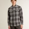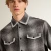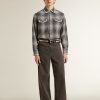 Il terzo drop della nostra collezione Autunno/Inverno 25 si rivolge al glamour funky degli anni Settanta, un’epoca in cui la notte diventa una tela per l’espressione libera di sé. Di colore grigio, questa camicia in misto lana da uomo si caratterizza per il motivo a quadri nero e per i dettagli ricamati bianchi sui bordi e sul retro. E come tocco finale, le due tasche patch e la chiusura con bottoni neri.