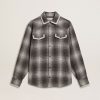 Il terzo drop della nostra collezione Autunno/Inverno 25 si rivolge al glamour funky degli anni Settanta, un’epoca in cui la notte diventa una tela per l’espressione libera di sé. Di colore grigio, questa camicia in misto lana da uomo si caratterizza per il motivo a quadri nero e per i dettagli ricamati bianchi sui bordi e sul retro. E come tocco finale, le due tasche patch e la chiusura con bottoni neri.